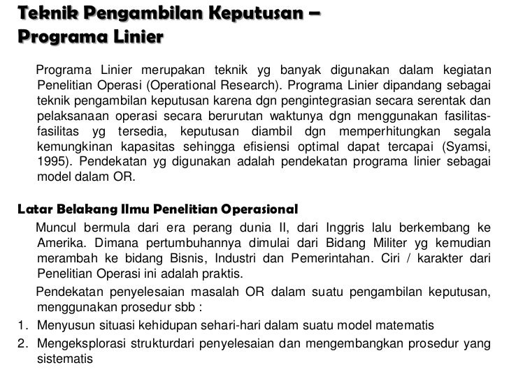 adalah pendekatan programa linier sebagai model dalam OR.Latar Belakang