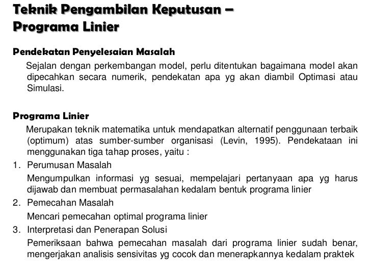Programa Linier dipandang sebagai teknik pengambilan keputusan karena dgn