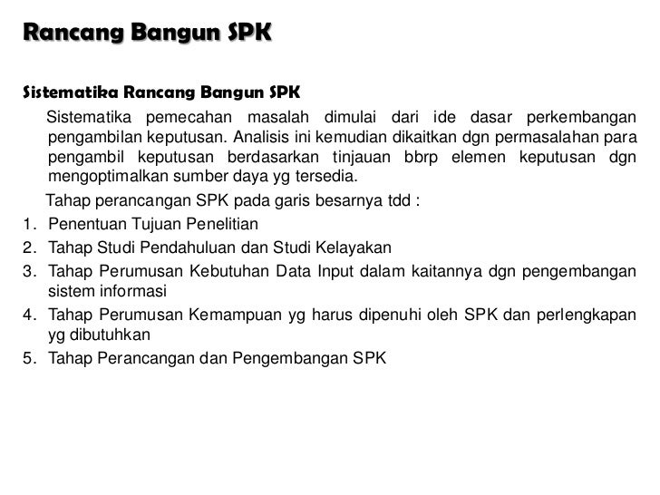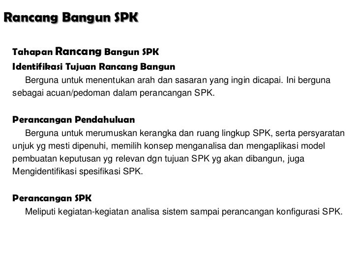 Mengidentifikasi spesifikasi SPK. Perancangan SPK Meliputi