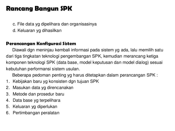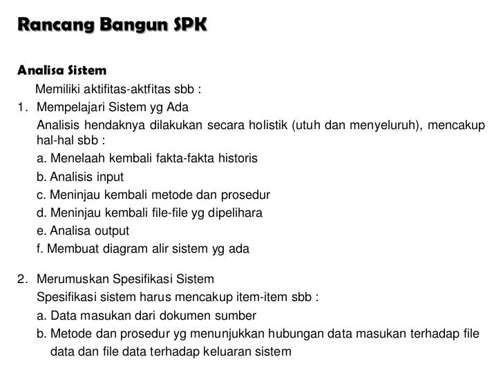 Bangun SPK c. File data yg dipelihara dan organisasinya d. Keluaran yg